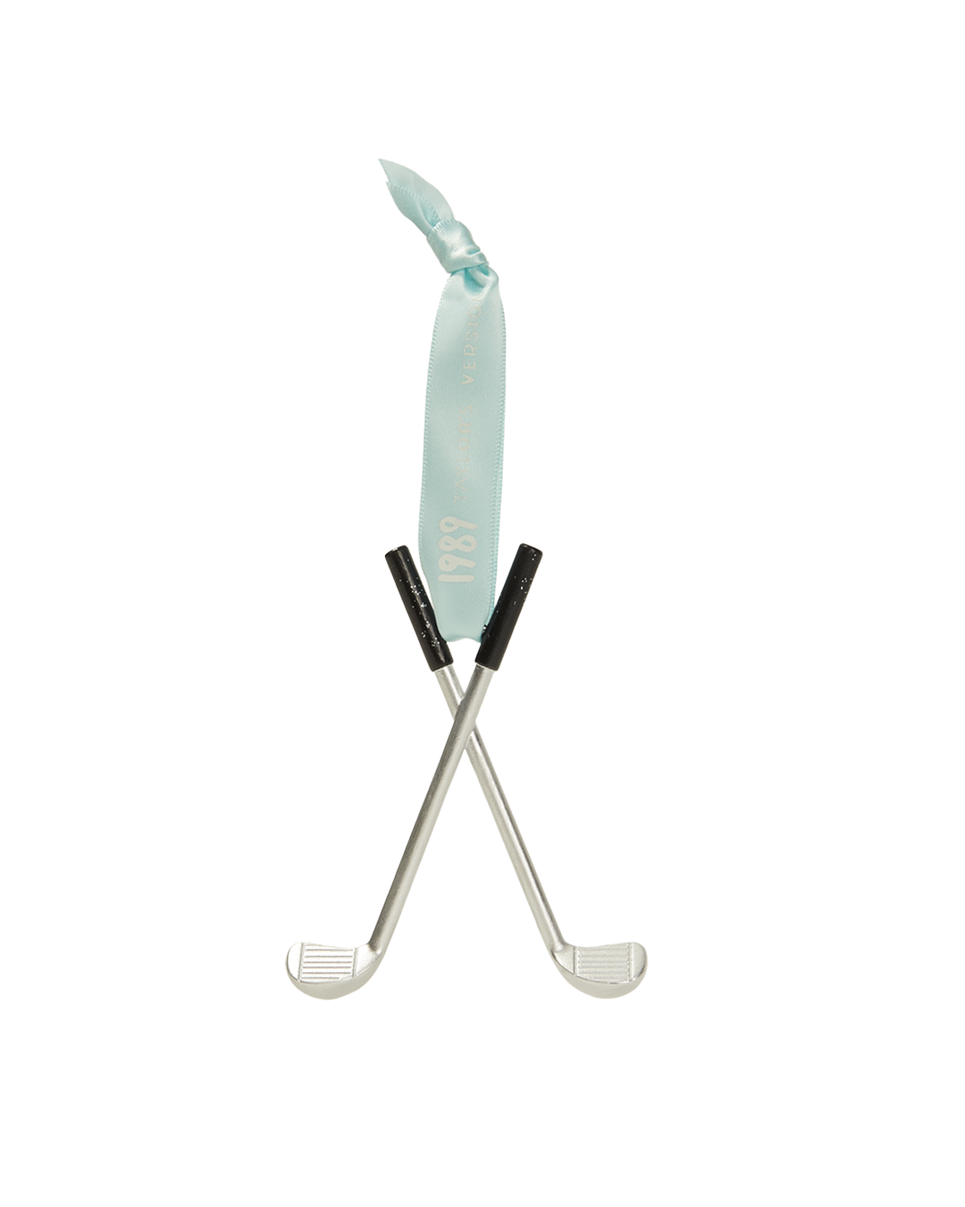 Golf club ornament with 1989 Taylor’s Version printed on blue ribbon.